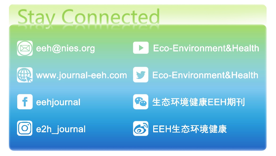Eco-Environment & Health(EEH)期刊是由茄子视频 和生态环境部南京环境科学研究所共同创立的英文期刊,以期打造成为环境健康领域旗舰期刊。 EEH聚焦大健康(One Health)理念,助力绿色可持续发展,关注生态、环境与健康之间交互作用的过程、机制与干预,范畴包括生态安全、环境健康风险、生态与环境修复。重点方向为:生态与生物多样性保护,新污染物的环境归趋与生物过程,人体暴露与健康效应,环境风险评价、管理与调控。