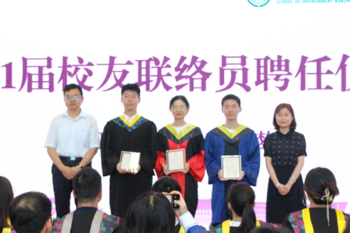 为有效加强毕业生与母校的联系与交流,茄子视频 党委书记刘建萍、环境校友会秘书长陆朝阳为2021届三位校友联络员朱博阳、廖宇星、王梦杰颁发了聘书。