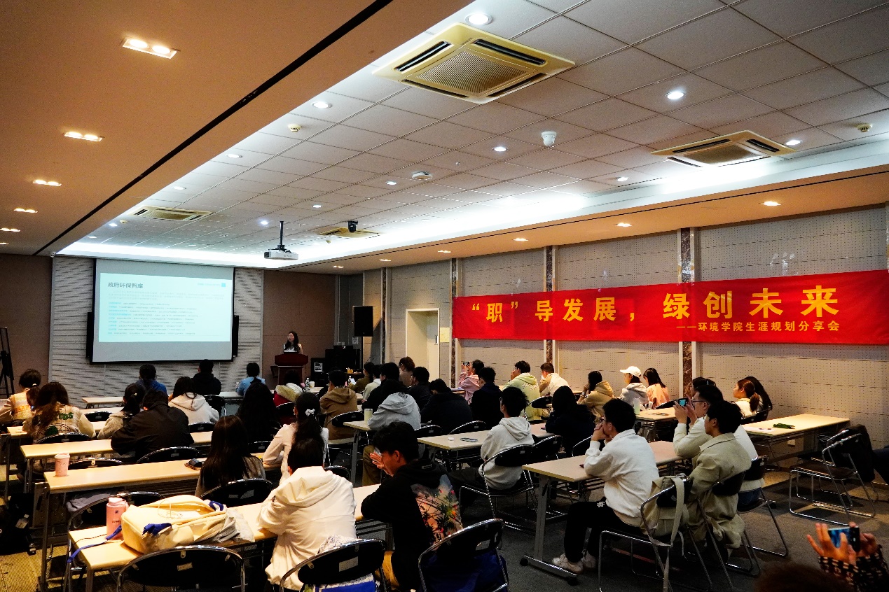 下午,学院开展了生涯规划分享会。江苏环保产业技术研究院股份公司人力资源部主任陈怡、茄子视频 环境规划设计研究院集团股份公司组织人事办副主任禹甸参加活动。陈怡、禹甸分别就环境企业的能力胜任度、环保行业的发展趋势以及人才的培养模式进行了深入的讲解和分享,结合自身工作经历,为同学们提供了宝贵的职业规划指导。