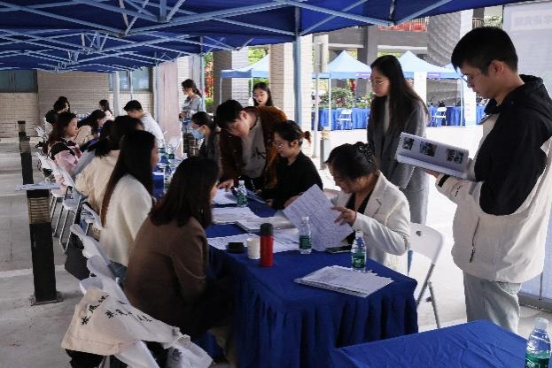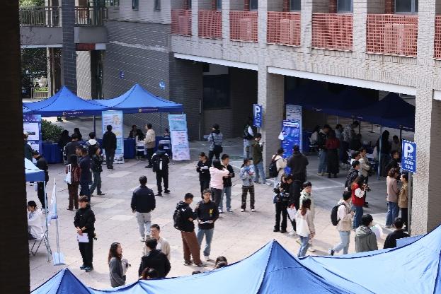 在招聘会现场,唐健、花铭等与用人单位和参会同学交流,了解就业需求与现状,鼓励同学们拓宽视野,紧跟国家与行业的人才需求动态,结合自身实际与目标岗位的要求,科学规划,把握机遇,实现高质量就业。