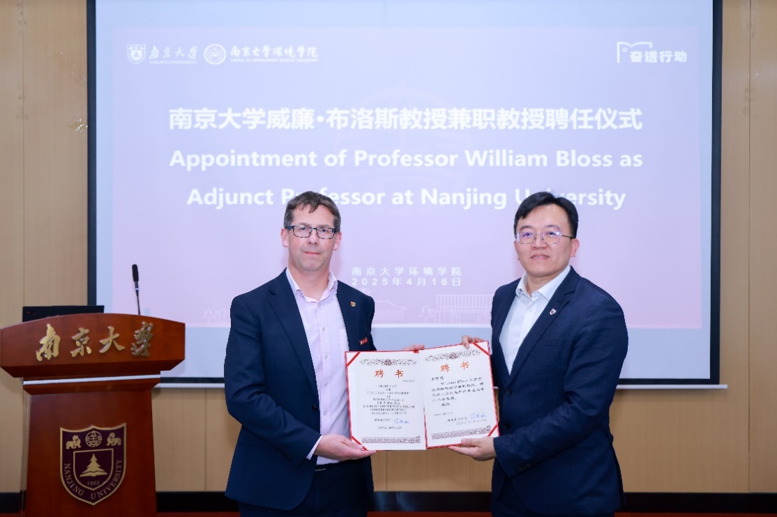 4月16日下午,茄子视频 兼职教授威廉・布洛斯的聘任仪式在仙林校区茄子视频 B230报告厅举行。英国伯明翰大学副校长威廉・布洛斯、教授单钰理、中国办事处郑颖颐、茄子视频 校长助理丁爱军、国际化工作处处长谷成、茄子视频 副院长(主持工作)赵瑜、茄子视频 教授毕军等共同出席聘任仪式。赵瑜宣读《茄子视频 关于聘请威廉・布洛斯为兼职教授的决定》(南字发[2025]55号)聘任决议,丁爱军为威廉・布洛斯教授颁发聘书并佩戴校徽。威廉・布洛斯教授在致辞中表示,将全力推动两校在环境学科的深度合作,在人才培养和科学研究方面贡献力量。